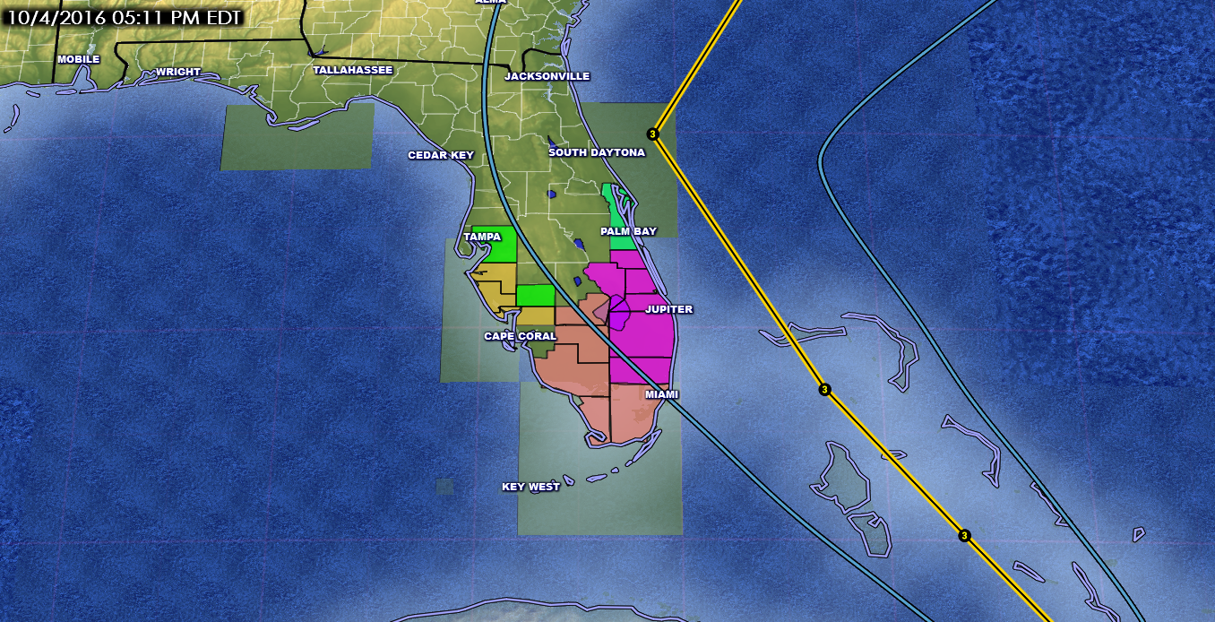 Going forward, the models continue to show a stronger ridge over the Atlantic ahead of the larger trough over the central US. The trough off the northeast coast will be moving out of the area allowing the ridge to maintain its strength. As a result, over the past several model runs we have seen a westward shift in the forecast track bringing the storm very close to the east coast of Florida. It is hard to say at this time where the center will make landfall over Florida but the hurricane force winds, as well as tropical storm force winds, will spread out far from the center of the storm.